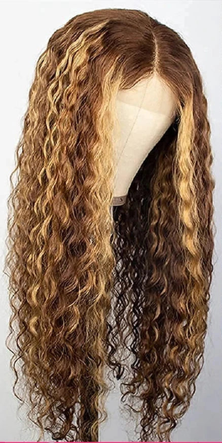 Shine with confidence and warmth with our 13x4 Highlight Curly Lace Front Wig, made from 100% premium Brazilian human hair. This stunning honey blonde and brown highlight blend gives a radiant, sun-kissed look that flatters every skin tone.