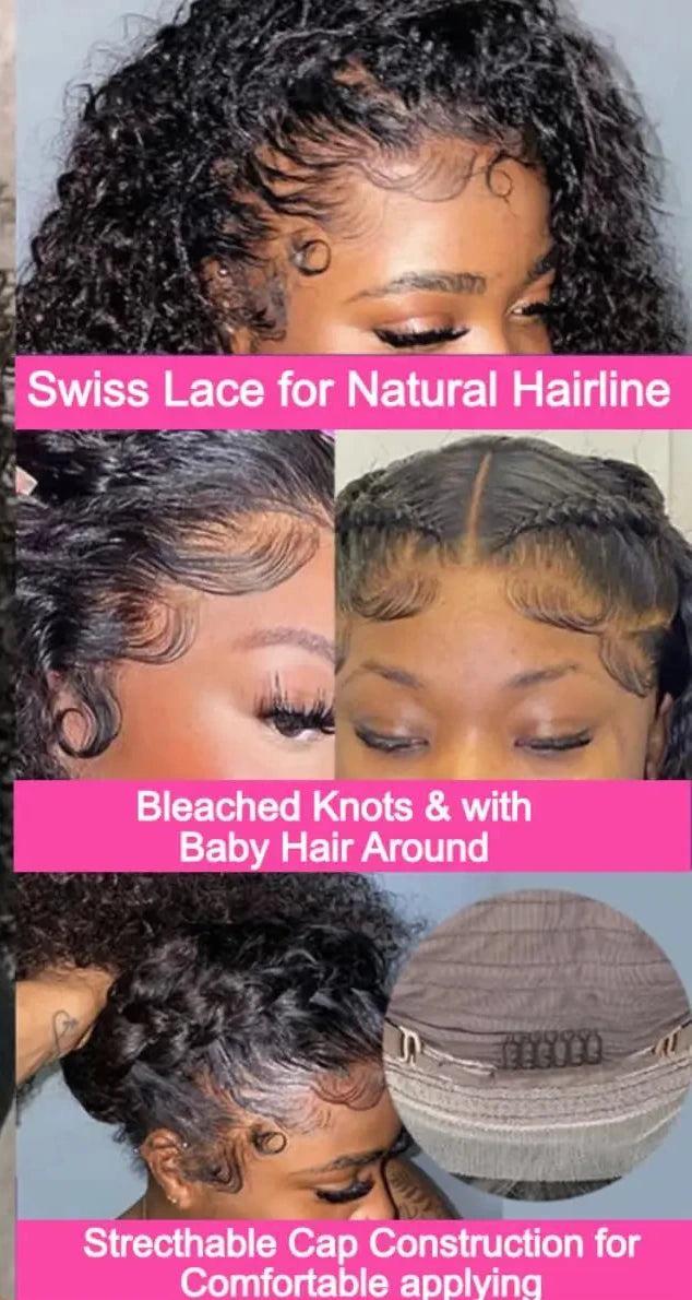 Experience effortless beauty with our Kinky Curly Glueless Wig, made from 100% premium human hair for a soft, natural look and feel. This 4x4 Swiss lace front wig is designed for easy wear — no glue or adhesive needed. Simply wear and go while enjoying full, bouncy curls that mimic natural hair.