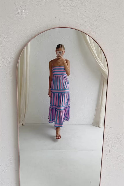 Striped Suspend Long Dress With Pockets